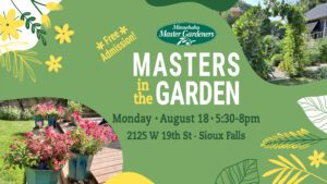 Masters in the Garden is a series of pop-up events that occur periodically during the growing season. The public is invited to view a Minnehaha Master Gardener’s yard and garden for a few hours. The Master Gardener will be on hand to answer questions, share ideas, and discuss the current season’s gardening successes and failures.